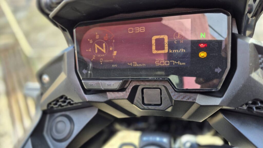 Segurança ABS Controlo de estabilidade (ESC) Controlo de tracção (TCS) Imobilizador eletrónico Luzes diurnas LED Sistema de travagem combinada (CBS) Travão dianteiro de disco Travão traseiro de disco Conforto e Conveniência Apoio lombar para passageiro Cruise control Mala/top case Sistema keyless Tomada 12V / Porta USB Estética e Outros Cavalete lateral Jantes em liga leve Pack estético (Sport, Touring, Adventure) Pintura especial / Personalização Pneus mistos (trail/adventure) Proteções de carenagem Proteções de motor (crash bars) Protetores de mãos Desempenho e Assistência Controlo de wheelie Start/Stop automático Iluminação e Visibilidade Farol LED Luzes diurnas LED (DRL) Painel TFT a cores Piscas LED